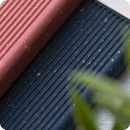 Specially developed by Atom, and an alternative to plastic, wood fiber is a durable material made of recycled wood and cornstarch-based ingredients.